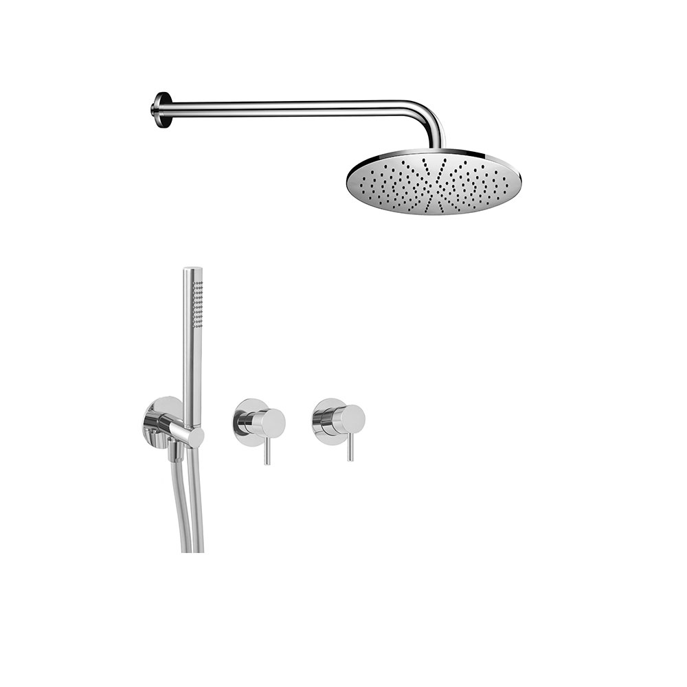 656230 Sistema doccia completo di soffione doccia in ottone con braccio da 35 cm, miscelatore meccanico ad incasso a 2 vie, doccetta anticalcare in ottone e flessibile anti-torsione da 150 cm