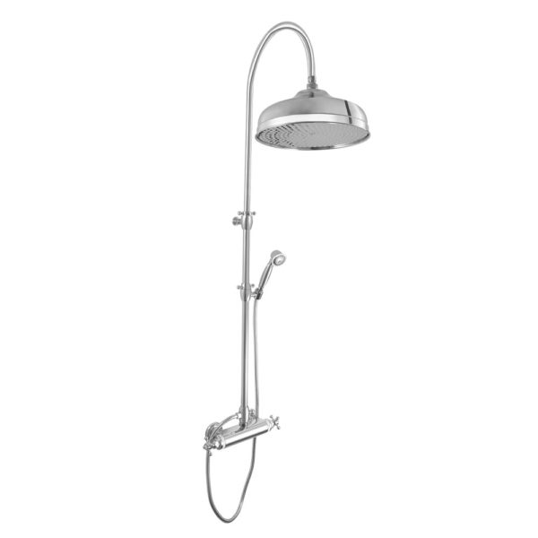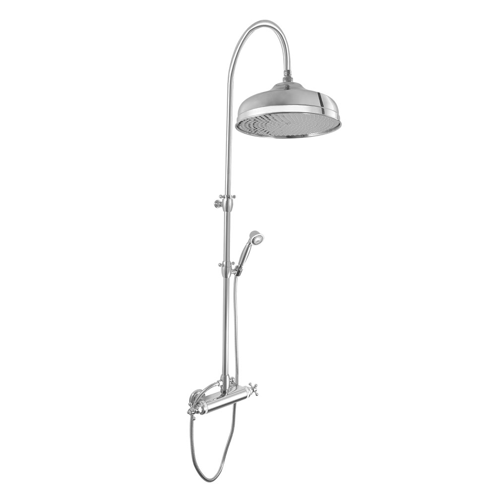Colonna doccia in ottone ad altezza regolabile con miscelatore termostatico, soffione anticalcare, flessibile anti-torsione cm 150 e doccetta anticalcare in ottone