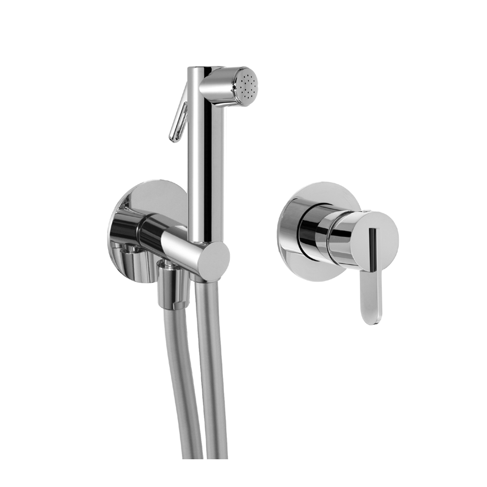 5990100 Doccetta igienica in ottone con supporto, presa acqua integrata, miscelatore ad incasso e flessibile cm.120